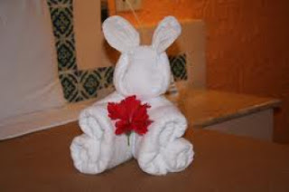 Si vous donnez un généreux pourboire à votre femme/homme de chambre de votre hôtel dans le sud, il se peut qu’elle/il vous fasse une jolie scupture en serviette!