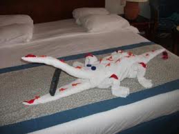 Si vous donnez un généreux pourboire à votre femme/homme de chambre de votre hôtel dans le sud, il se peut qu’elle/il vous fasse une jolie scupture en serviette!