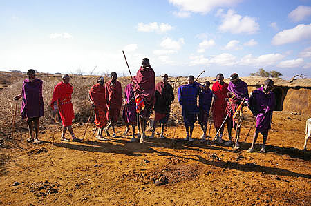 En route, nous faisons une halte dans un village Maasai. Nous découvrons une nouvelle culture : danse, maison, «taarnack» ! Les couleurs de leurs vêtements ont des significations : le blanc pour l’amitié, le rouge pour le courage et le noir pour la fidélité.