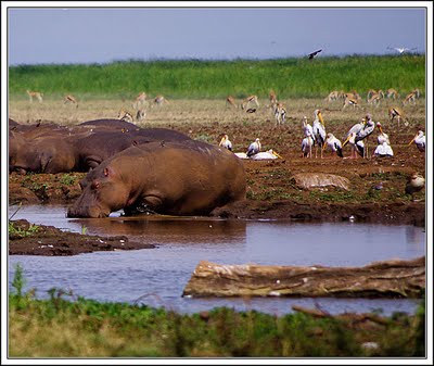 Wow! C’est magnifique, deux lions marchent à proximité du 4×4. Nous pouvons nous étirer la main pour leur toucher!! Ce midi, nous pique-niquons à côté des hippopotames; nous devons manger dans la voiture pour éviter de nous faire picosser par les oiseaux. Nous voyons encore une fois un lion, une lionne et des lionceaux. Ils sont tellement mignons.
